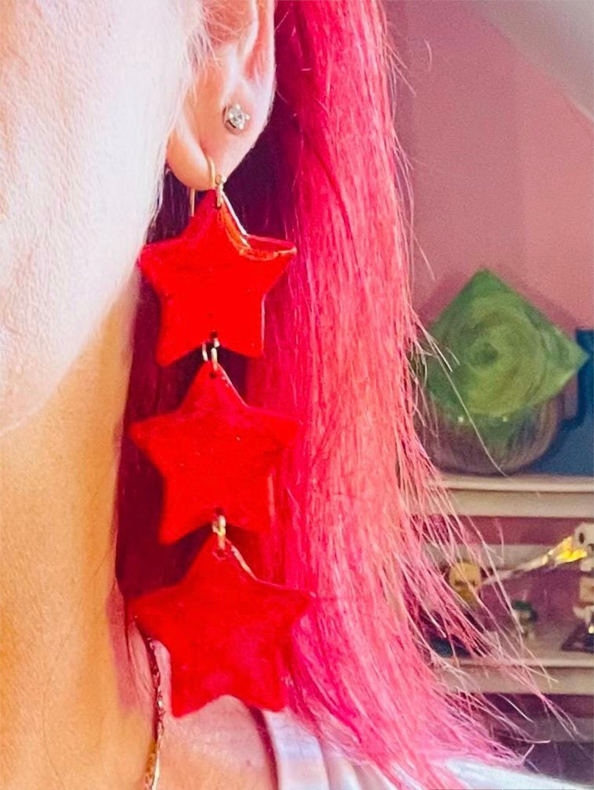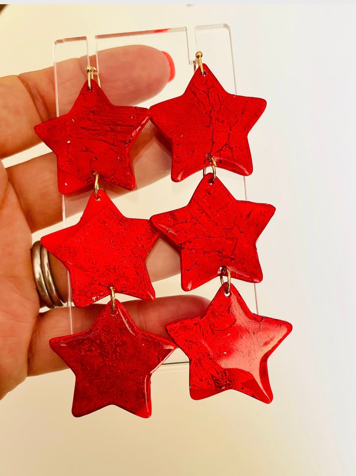 These red stars handmade earrings are perfect as a festive or romantic gift. These red earrings are a fun accessory for any occasion. Have a friend that loves stars? These earrings would make a lovely present.