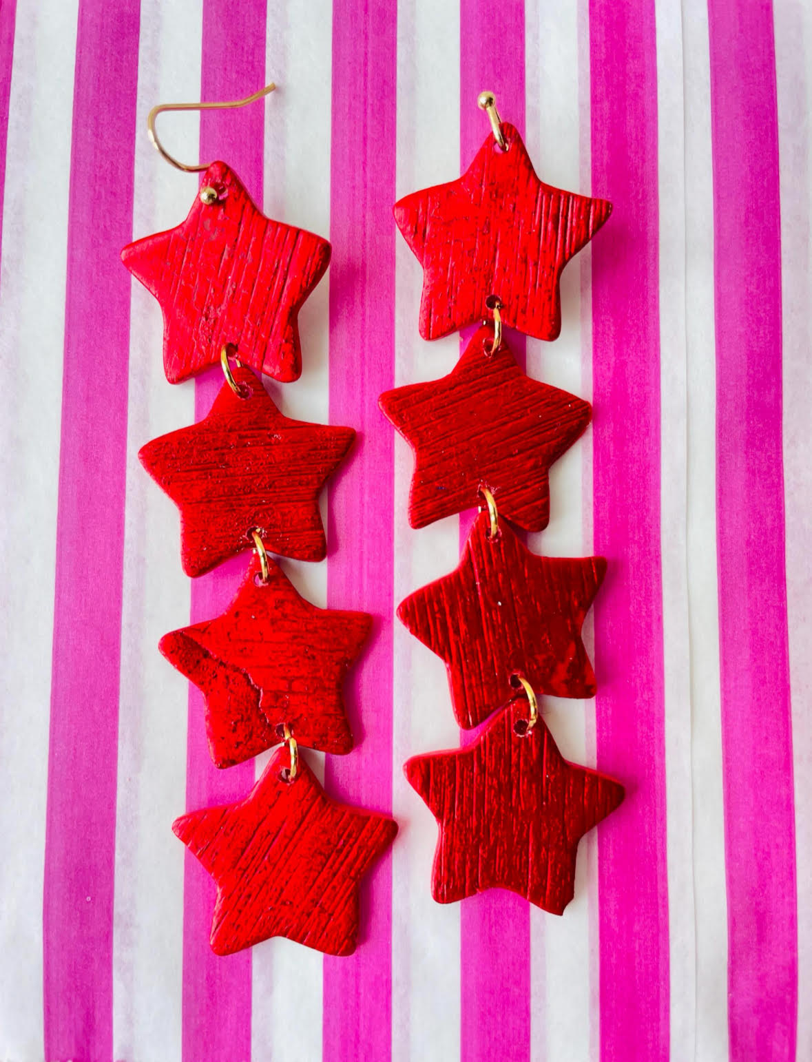 Glamorous red star earrings—perfect for a festive Christmas or romantic Valentine’s Day.