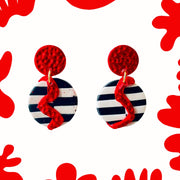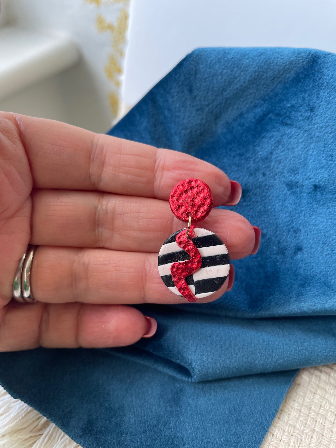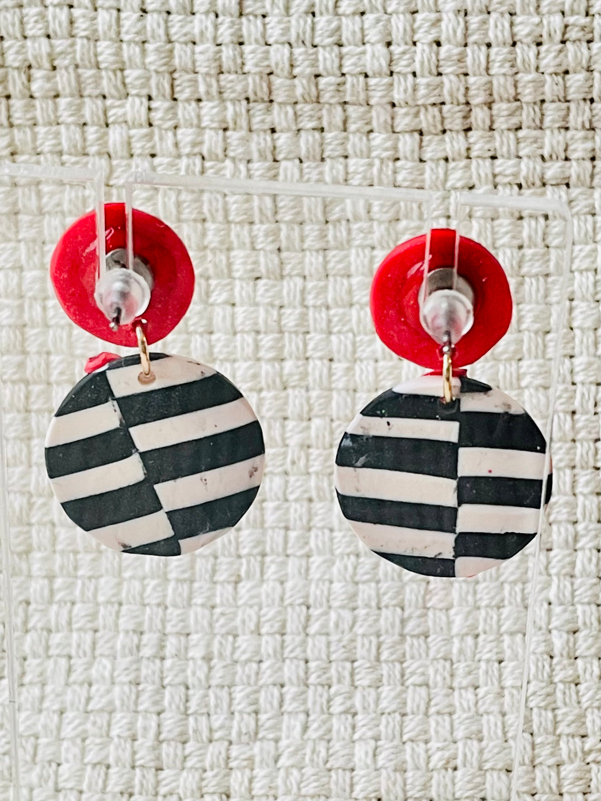 LAMPO -Small Red earrings, Black and white earrings, Handmade gift for her